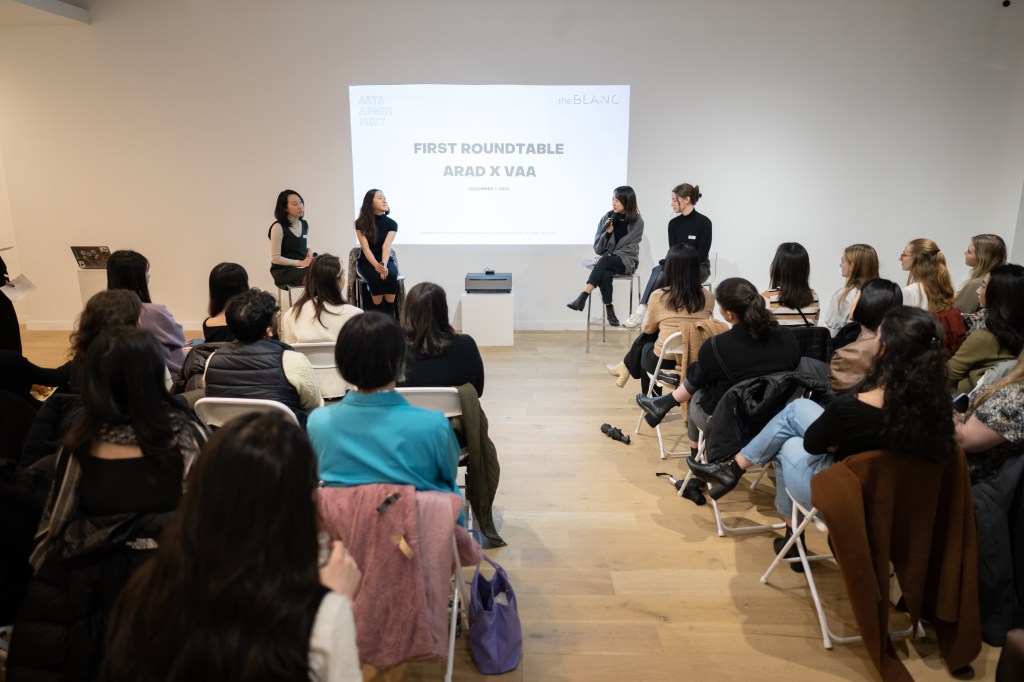 On December 3, 2022, Arts Admin Next (AAN) launched its inaugural event, “First Roundtable: ARAD X VAA,” at TheBLANC gallery, bringing together current students and alumni from the Arts Administration (ARAD) program at Teachers College, Columbia University, and from the Visual Arts Administration (VAA) program at New York University.